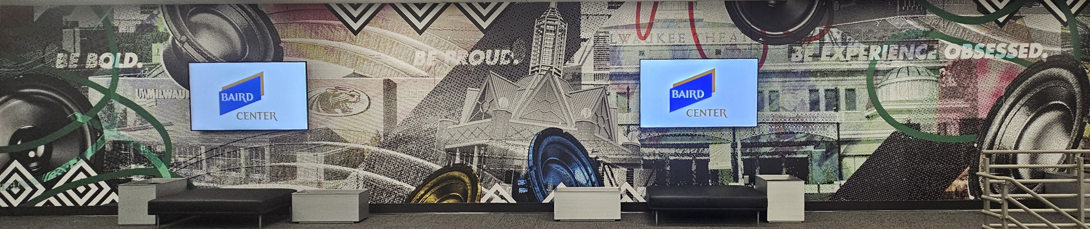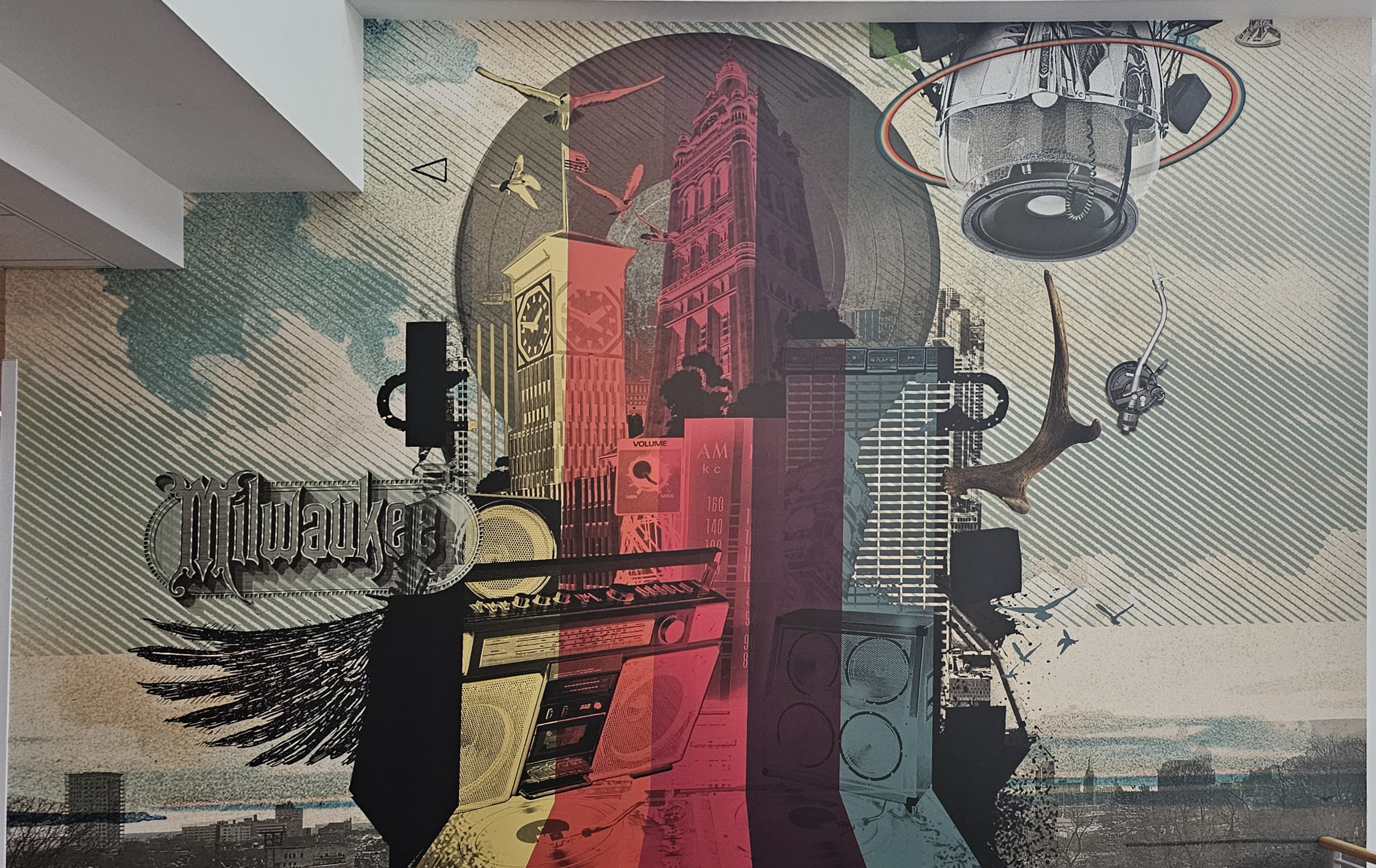 Ethos was designed to integrate the pride that the Wisconsin Center District (WCD) staff have in themselves, their work and the community where they live. It contains representations of the three WCD venues mixed with the music, entertainment and connections that take place within the venues. It is a testament to the WCD’s Be Bold. Be Proud. Be Experience Obsessed., commitment to themselves and their guests.