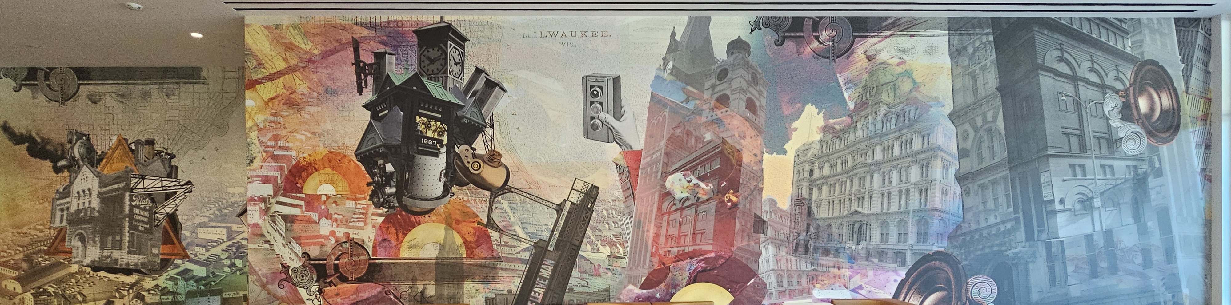 Invisible Score is a time travelling piece that uses early maps of Milwaukee to illustrate the boom in industry and the city’s early music scene that helped create Milwaukee’s culture and vibe. It pays homage to the special things that make Milwaukee a one-of-a-kind community and such a welcoming place for transplants and visitors.