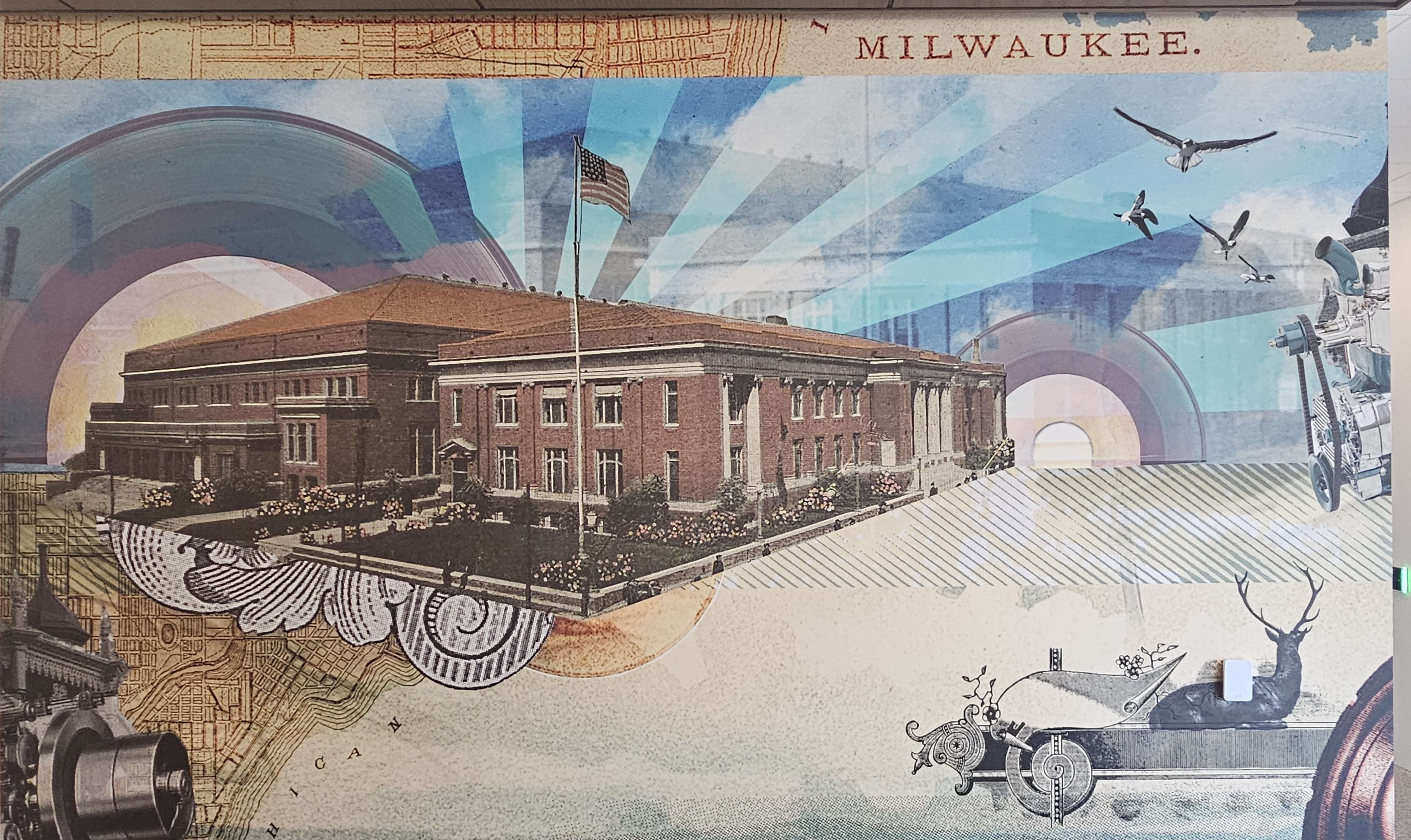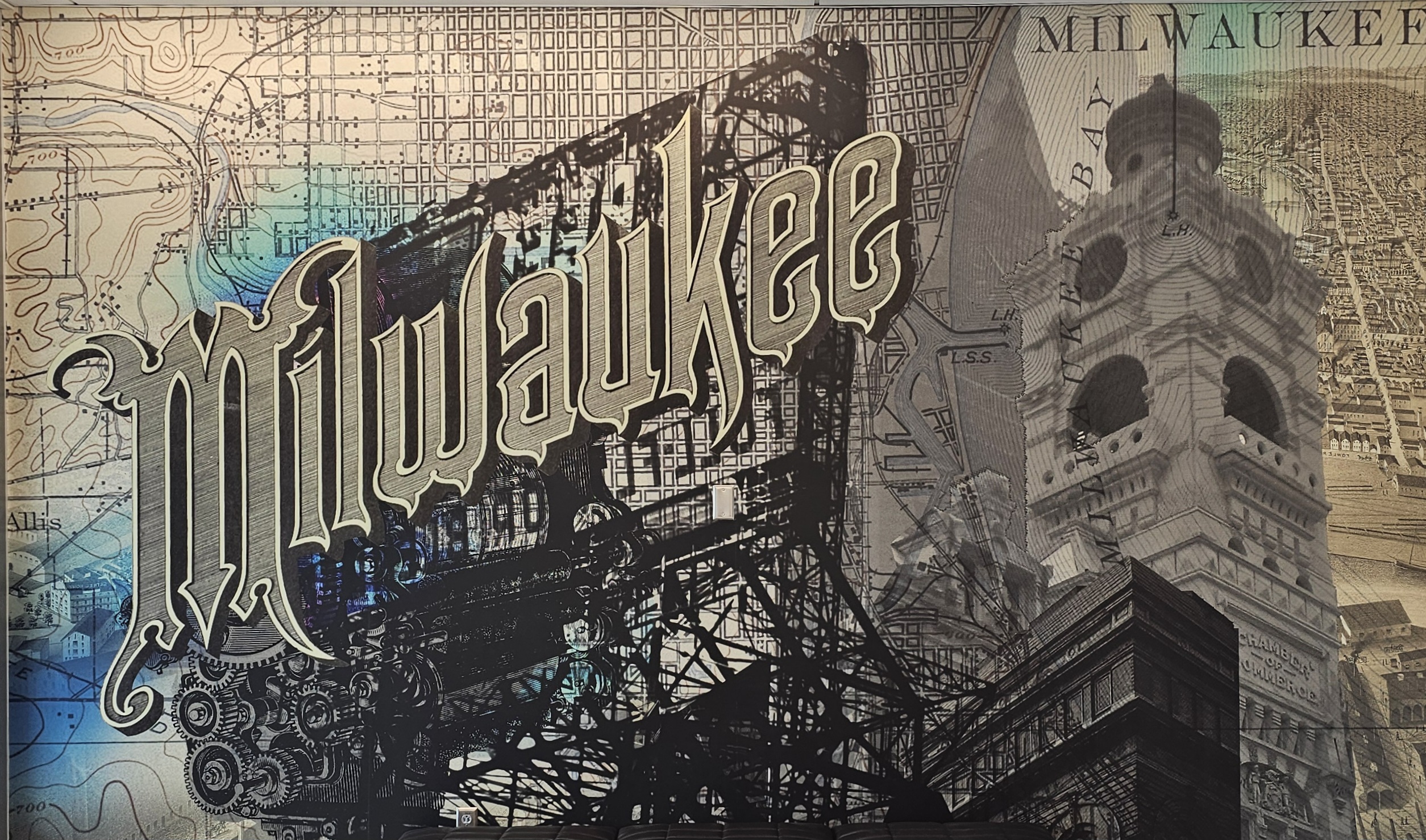 Milwaukee Rising features a depiction of the Mackie Building, which served as the city’s first chamber of commerce and the name Milwaukee as depicted in the Sanborn Map that has become a recognizable symbol of the city.