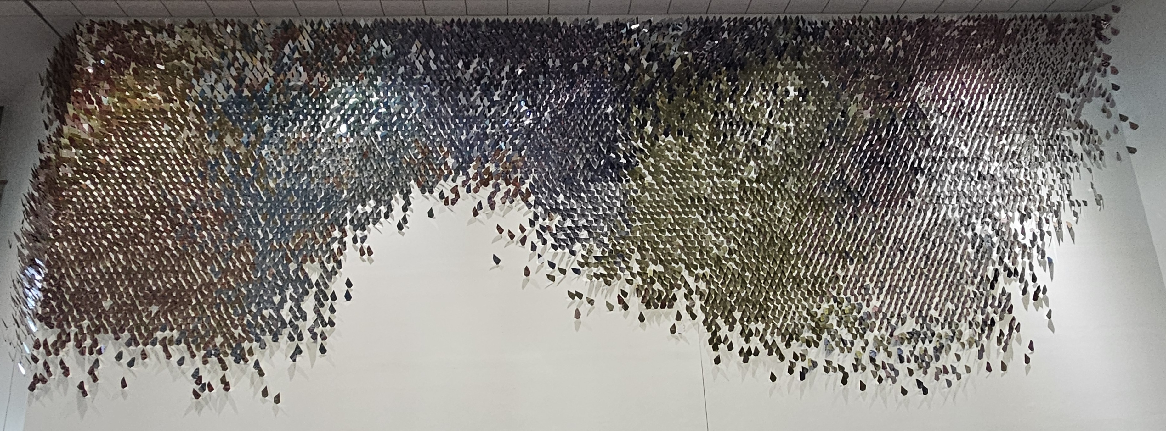 “When people walk by it reflects their image on the scattered pieces. I really hope that people notice that and explore it. If they move back and forth in front of it, they will see how their motion and what they are wearing alters and changes the piece. I am really excited to see when this room is really full of people and how the entire piece transforms.”