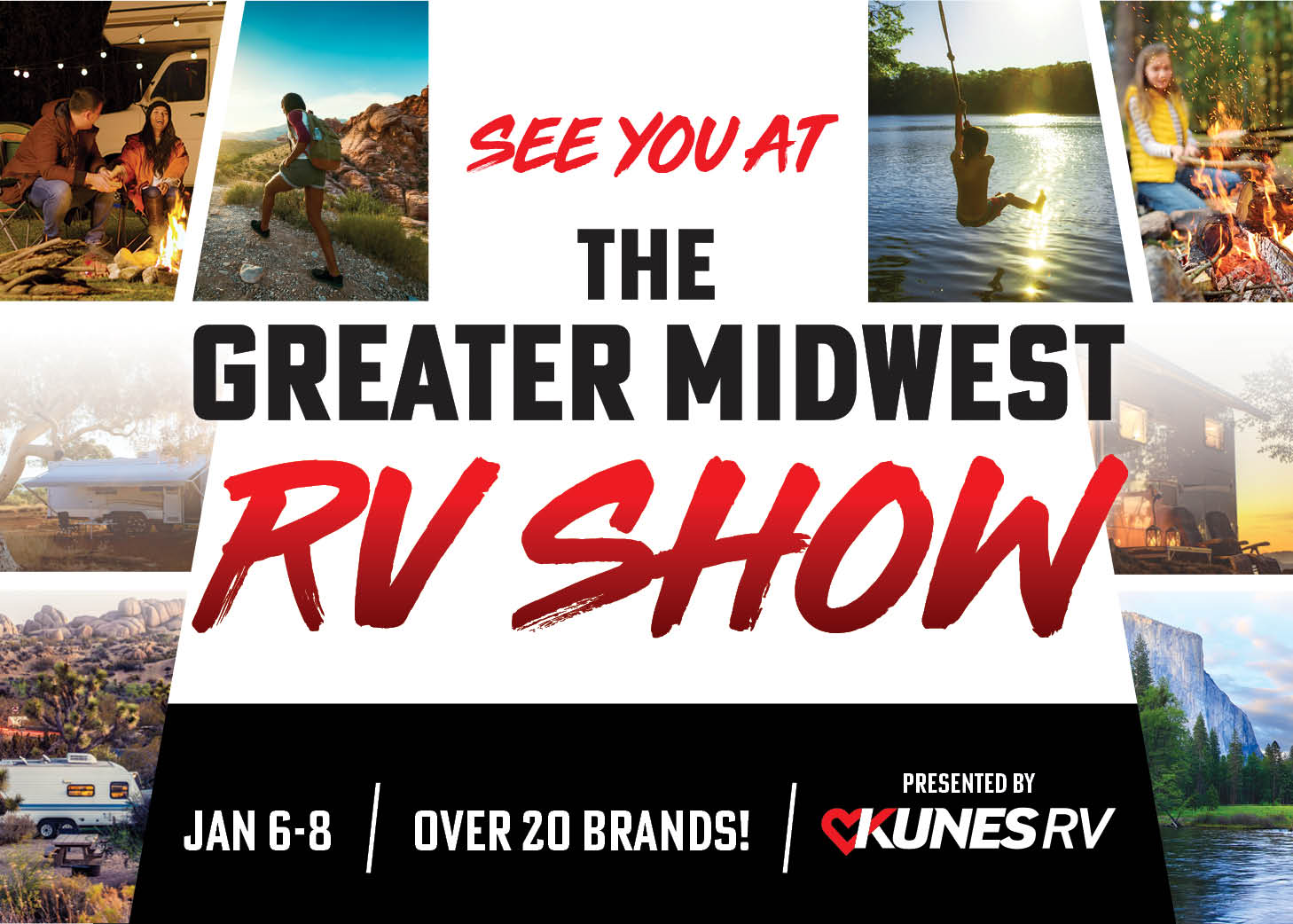 Join the Midwest's fastest growing RV Dealer Group as they showcase a variety of RVs with floorplans that can fit every camping lifestyle.  From big to small, you'll be able to see it all in one place.   Join the newly acquired Lake Mills store along with the flagship Kunes RV of Elkhorn store to see the NEWEST 2023 models that will be sure to impress. You'll find new tech, impressive interiors and convenient solar packages in a variety of trailers that are all indoors and out of the elements.  FREE ADMISSION   FRI.-10AM-7PM SAT. 10AM-7PM SUN. 11AM-4PM